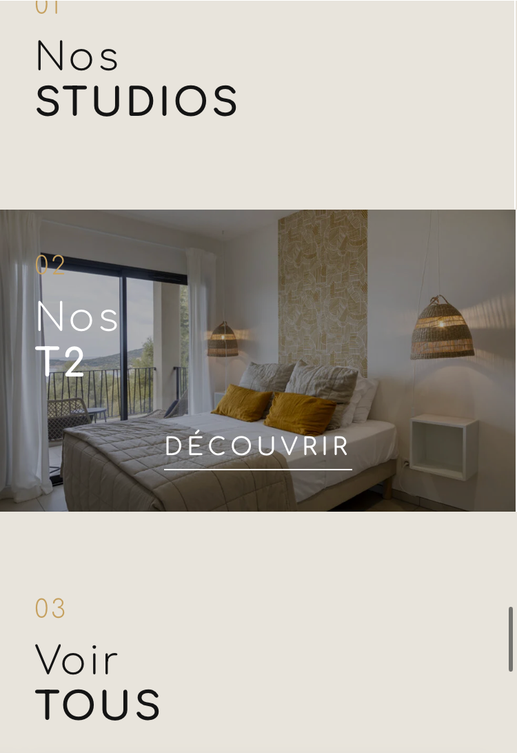 Nous concevons une interface intuitive où chaque section comme l’hébergements, les services, l’environnement, et le moteur de reservation met en avant les atouts du projet tout en favorisant l’exploration.