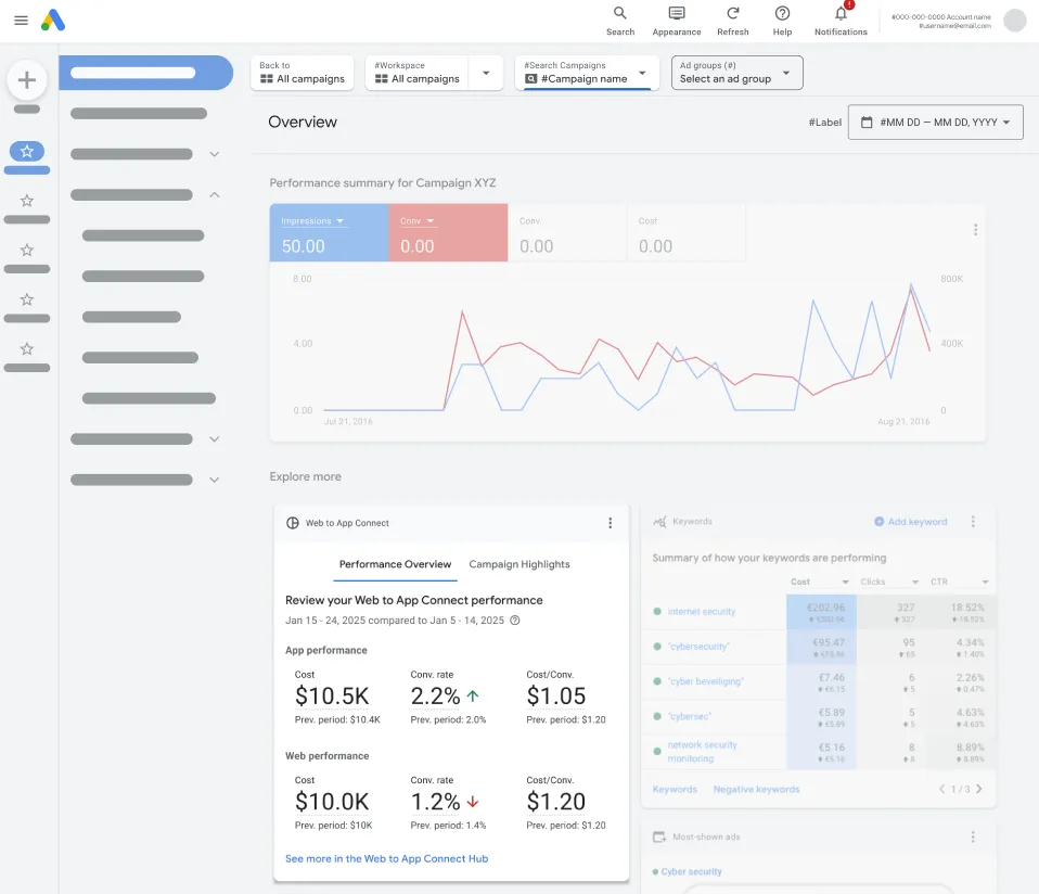 Fini le temps des rapports éclatés. Une nouvelle carte de synthèse sur la page d’accueil Google Ads présente côte à côte :